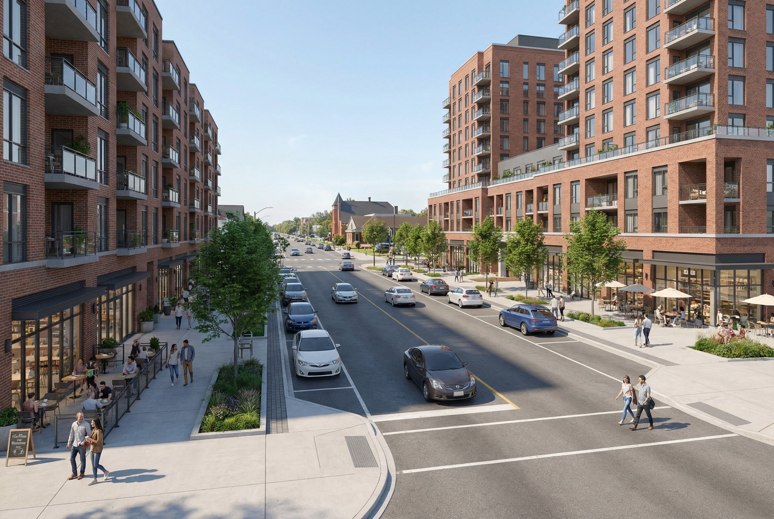 Contributions included community design analysis for both study areas; advice on heritage-adjacent development, streetscape character, and transitions between low-rise residential fabric and intensification nodes; and input to the policy structure of the draft bylaw and Official Plan Amendment to embed urban design and heritage objectives as enforceable standards.