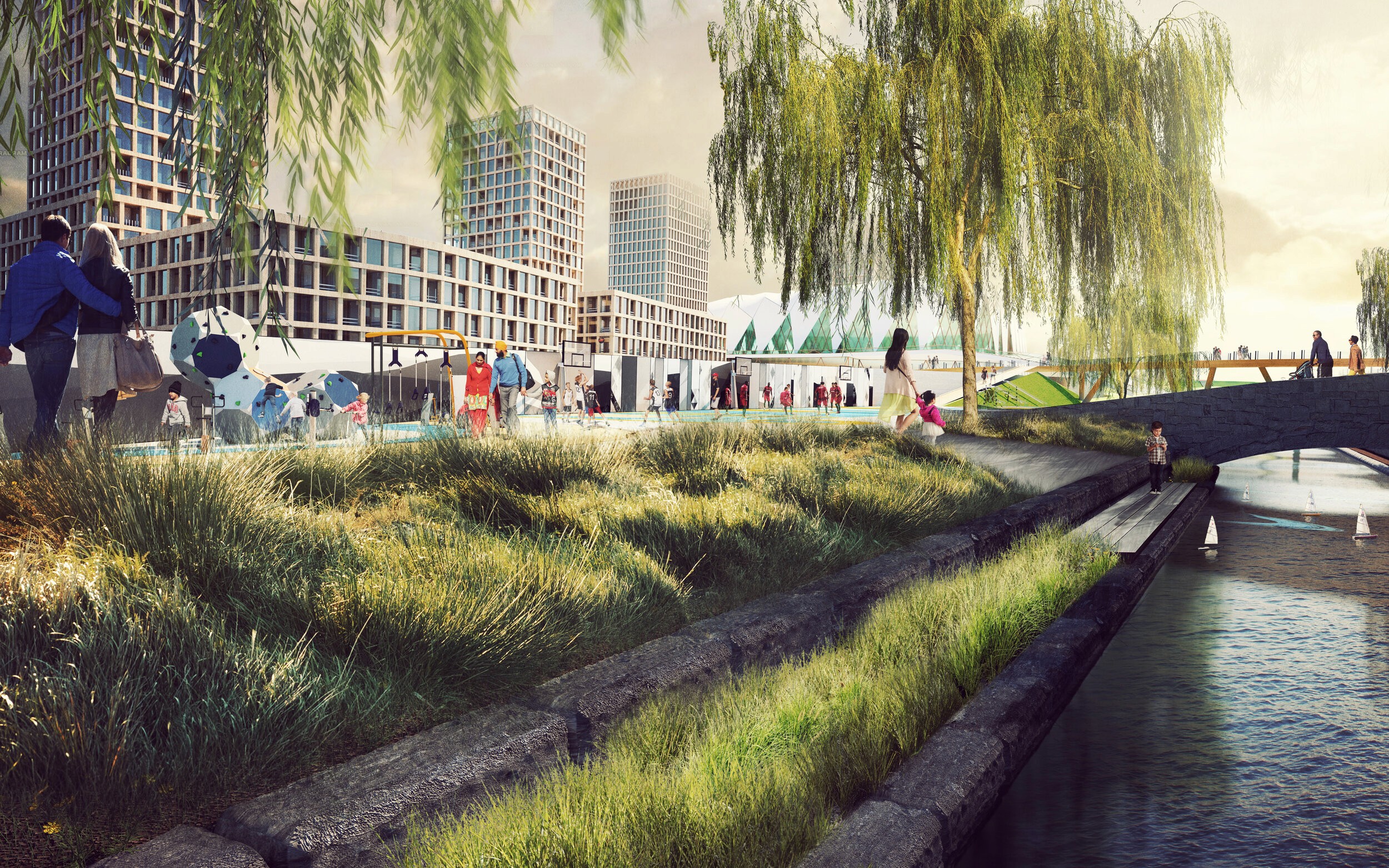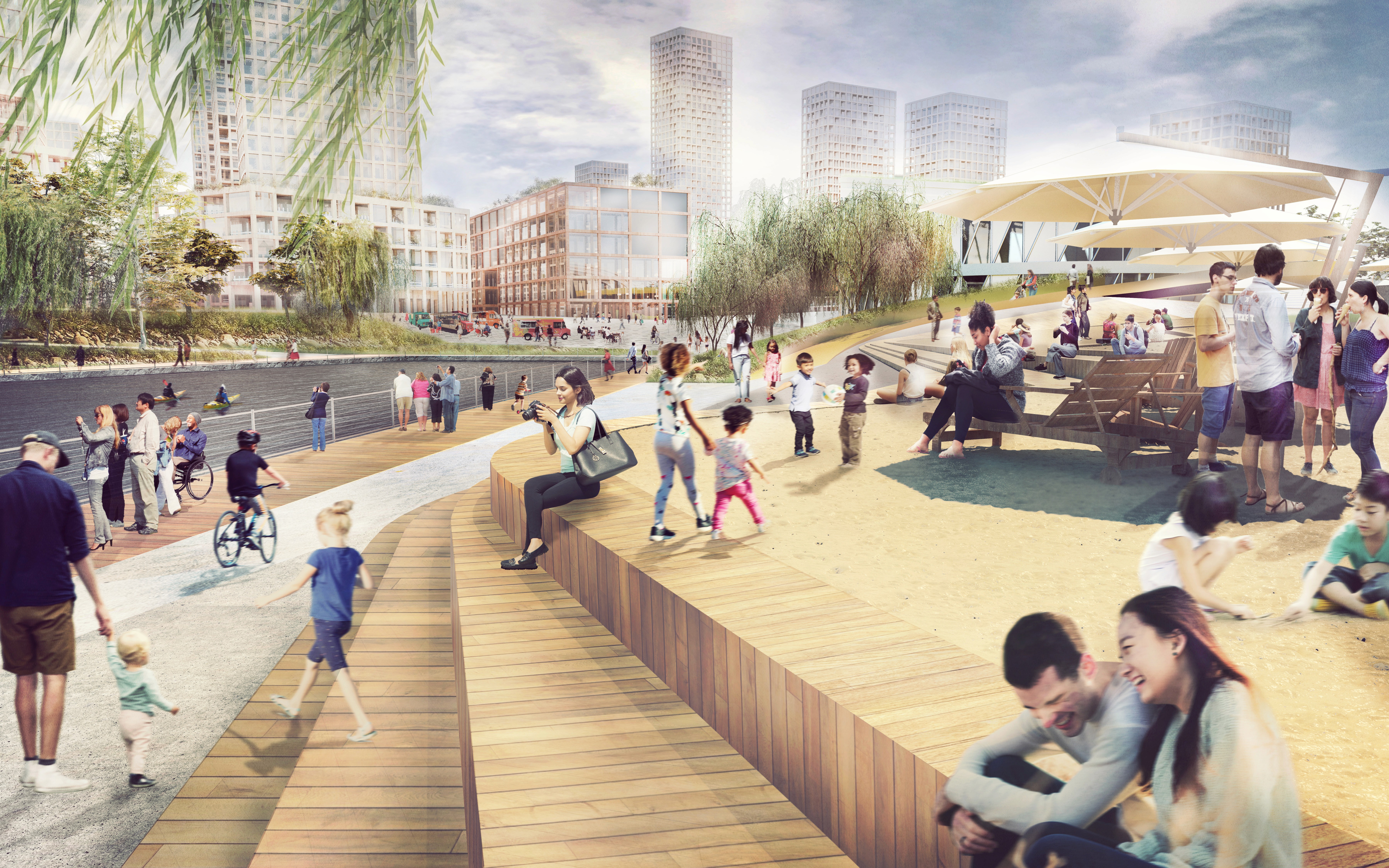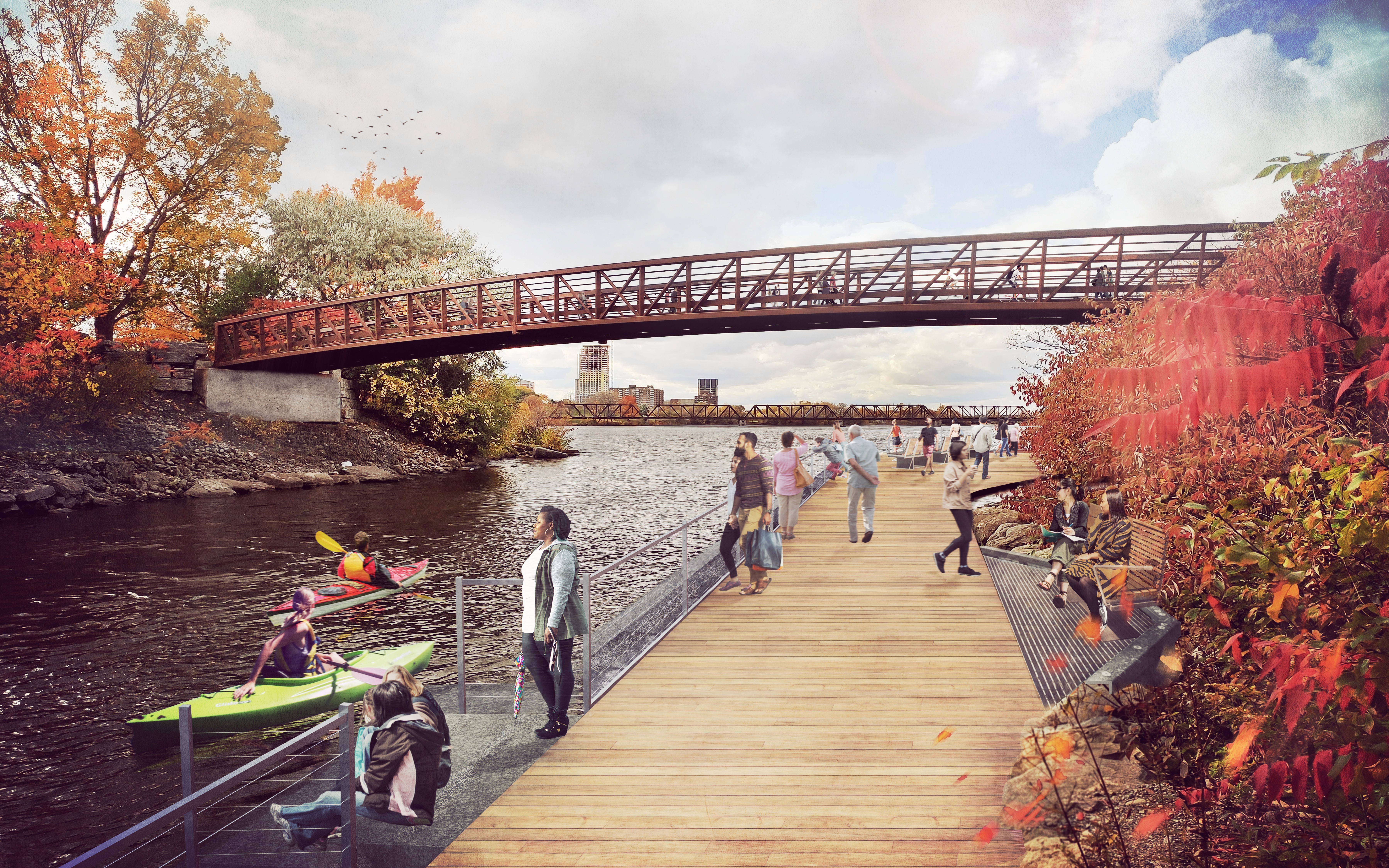 The project is anchored by foundational commitments to affordable housing, sustainability, parks, community amenities, and economic benefits for equity-deserving people and Indigenous Nations. Parks and open space comprise 40% of the site. The Ottawa Senators have chosen LeBreton Flats as the location for their new event centre.